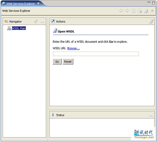 在 Web Services Explorer Navigator 视图中,选择 WSDL Main元素。这将显示出 Open WSDL操作(参见图 4。)。