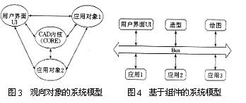 组件结构是面向对象结构的继承和延伸,它具有面向对象结构的所有优点.同时,在这种模型中,组件是一种封装良好的功能部件,对外具有一致的接口,组件间的通讯由总线统一代理,降低了组件之间的相互依赖.软件开发者可以方便地定义和建构新的即插即用组件来扩充系统.以命令为例,如果想在系统现有命令组件的基础上增加新的命令组件,只要按照命令组件的既定接口规范定义其各个状态,插入系统,执行自动机就会象执行内部命令一样自动执行.应用组件的增加更为容易,甚至可以在系统运行期间动态载入和卸载.CAD系统模型中引入组件结构,大大增加了系统功能的开放性和可扩充性。