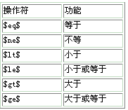 需要说明的是:表格中的操作符在比较字符时对大小写是敏感的,如果要忽略大小写的不同含义,在每个操作符前面加上前缀字母“i”即可,如“$ieq”。