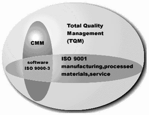目前业界认同的软件质量标准主要有两个:CMM和ISO 9001标准。