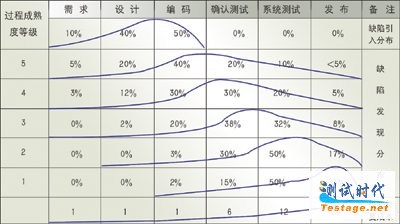 从图3可以看出,缺陷是在开发过程的前期引入,但越到后期缺陷修复的成本越高,随着CMM级别的提高,缺陷的消除将从后期逐步转移到前期,遗留到用户手中的缺陷也相应减少,这必将大大缩短开发周期,降低不必要的成本。