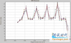 图7.一次flat测试中所测得的系统CPU使用量随时间变化的曲线