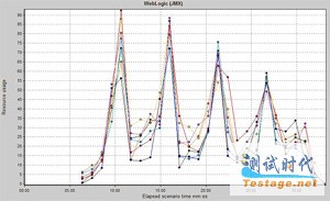 当测试中所有的用户都同时执行几乎相同的操作时,就会发生这种现象。这将会产生非常不可靠和不精确的结果,所以必须采取一些措施防止这种情况的出现。有两种方法可以从这种类型的结果中获得精确的测量值。如果测试可以运行相当长的时间(有时是几个小时,取决于用户的操作持续的时间),最后由于随机事件的本性使然,服务器的吞吐量会被“拉平”。或者,可以只选取波形中两个平息点之间的测量值。该方法的缺点是可以捕获数据的时间非常短。
