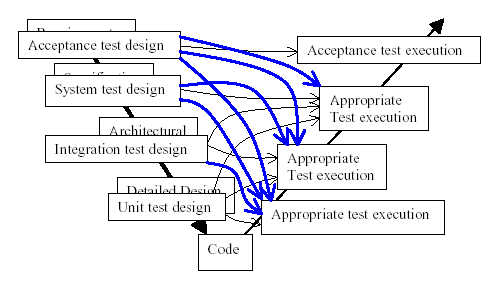 (图3--将测试设计覆盖了开发过程后的V模型)