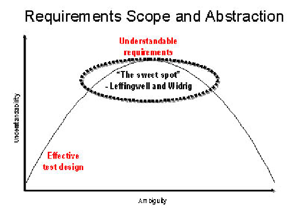 实际上,Leffingwell和Widrig并没有真正地考虑到测试的问题。他们的主要目的是想让需求具备很高的可理解性,以便于让用户和投资者能够充份理解。他们没有解决这样的问题,即如何把规格说明提交给其他投资者和生命周期的其它阶段。作为一种争议,他们认为有必要保留一部份不明确性。而实际上,不明确的需求显然会让测试人员发疯。