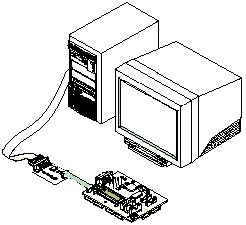 片上调试是在处理器内部嵌入额外的控制模块,当满足了一定的触发条件时进入某种特殊状态。在该状态下,被调试程序停止运行,主机的调试器可以通过处理器外部特设的通信接口访问各种资源(寄存器、存储器等)并执行指令。为了实现主机通信端口与目标板调试通信接口各引脚信号的匹配,二者往往通过一块简单的信号转换电路板连接(如下图所示)。内嵌的控制模块以基于微码的监控器(microcode monitor)或纯硬件资源的形式存在,包括一些提供给用户的接口(如断点寄存器等)。具体产品有Motorola CPU16、CPU32、Coldfire系列的BDM(Background Debug Mode),Motorola PowerPC 5xx、8xx系列的EPBDM(Embedded PowerPC Background Debug Mode),IBM、TI的JTAG(Joint Test Action Debug,IEEE标准),还有OnCE、MPSD等等。下面以MPC860的EPBDM为例介绍片上调试方式。