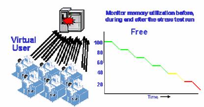 压力测试(stress testing)(图 6)在系统达到饱和(指资源如 CPU、内存耗尽等情况)时来测试系统以判断其行为是否发生变更,或者是否会对系统、应用程序和数据产生不利影响。容量测试(volume testing)是和压力测试及可伸缩性测试相关联的,它可以确定整个系统能够处理的事务容量。通过压力和容量测试能够知道系统分别在处理突发的访问量增加或进行持续的大容量活动时所具有的弹性,这不包括那些因为内存泄漏或者队列溢出所引发的失败。